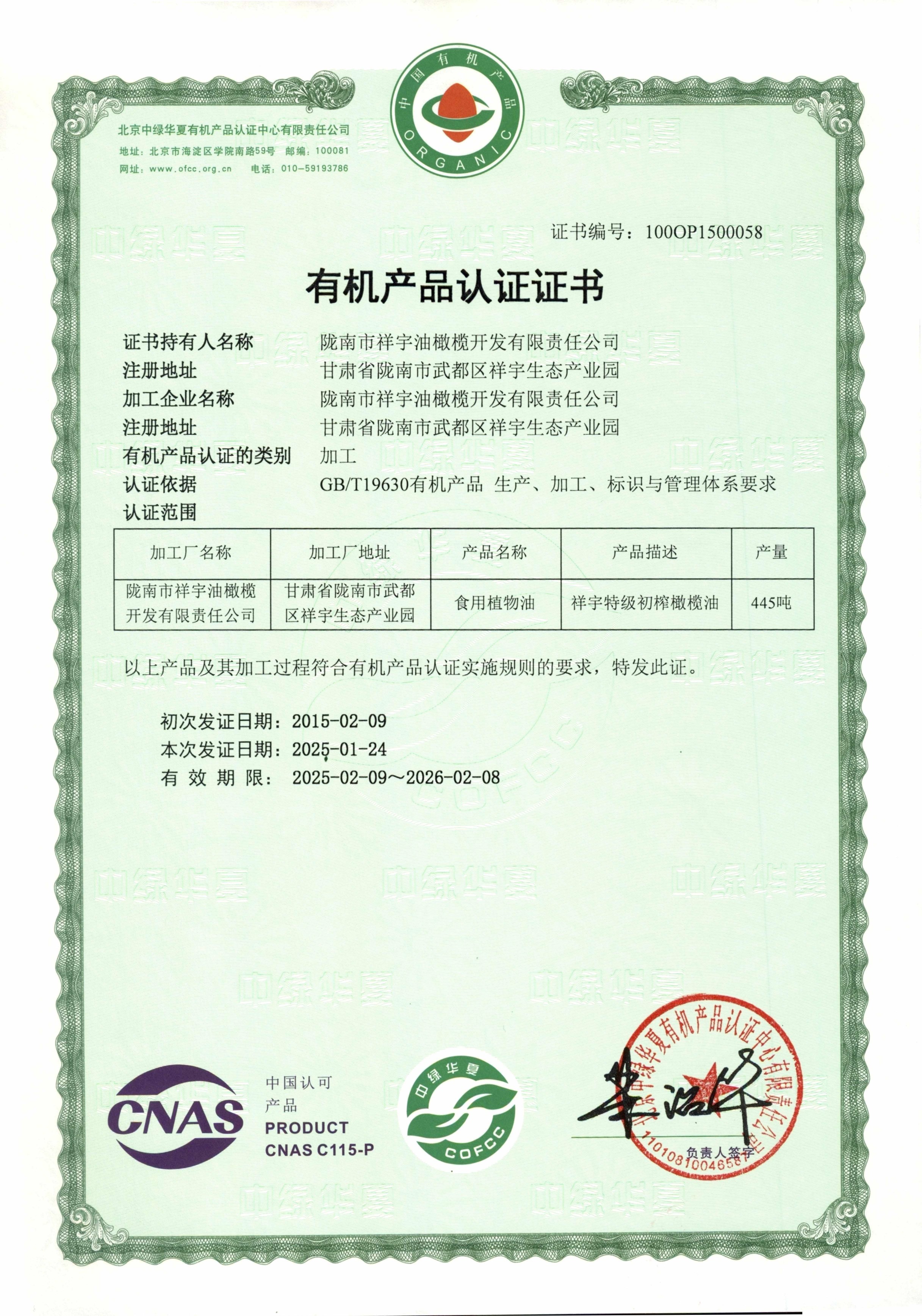 有機(jī)產(chǎn)品認(rèn)證證書