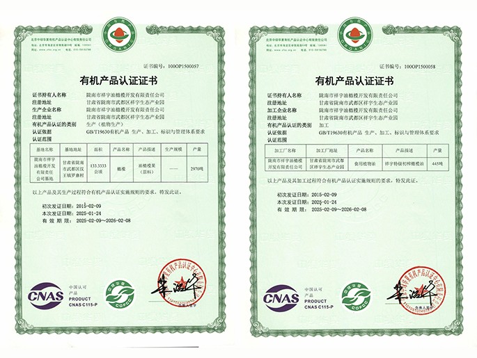 有機(jī)產(chǎn)品認(rèn)證證書(shū)